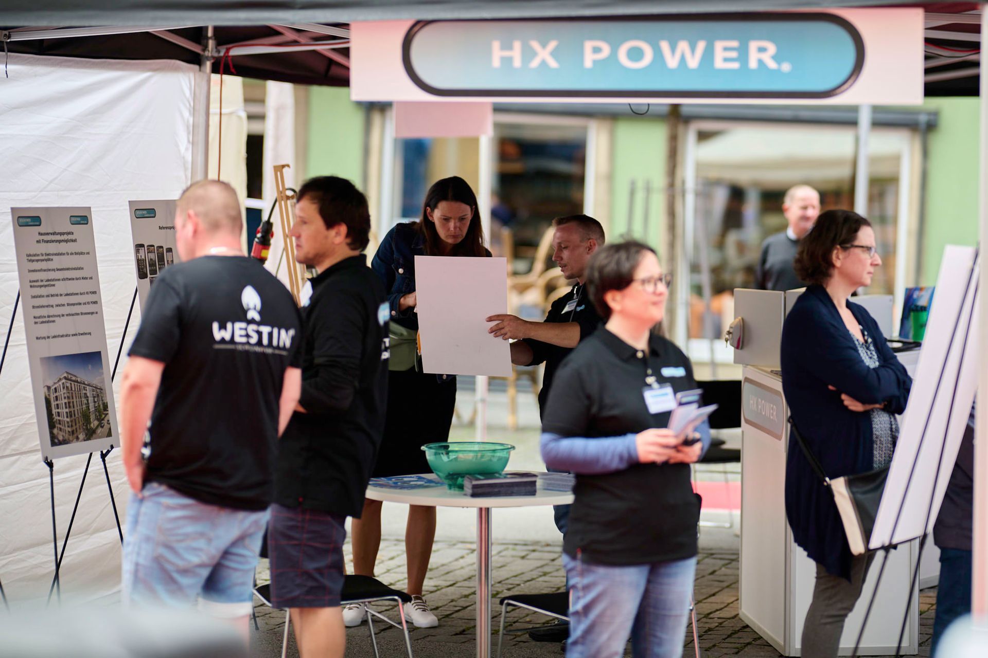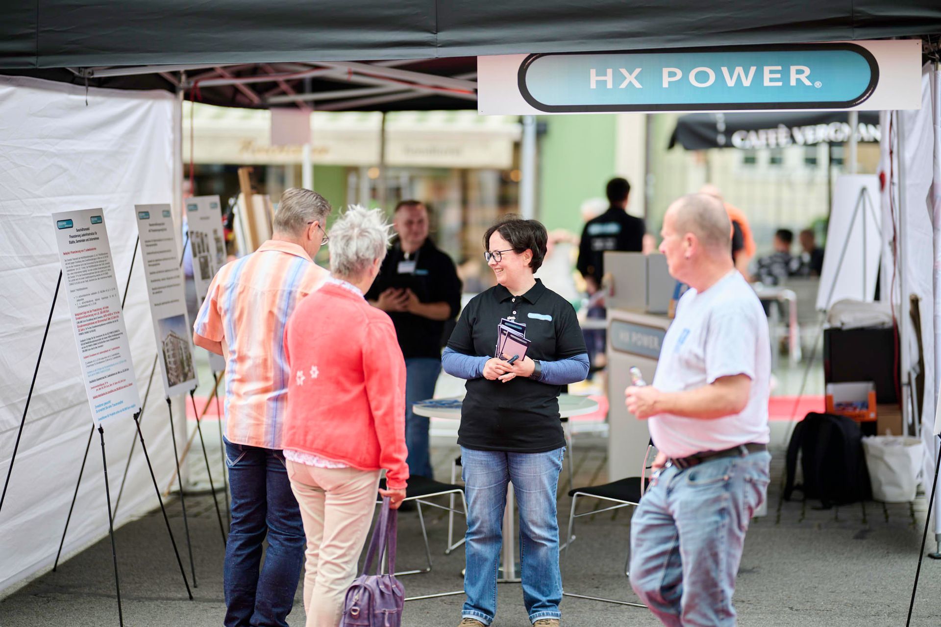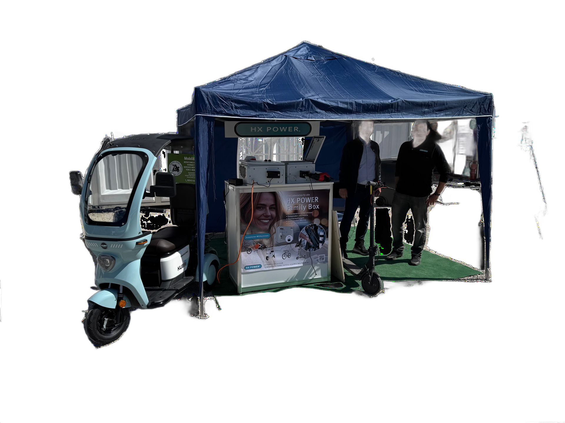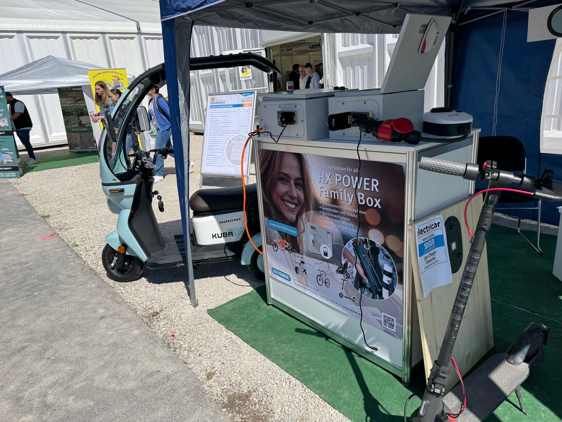 Messestand mit den neuen HX POWER FAMILY Boxen Privat und Öffentlich und Aufladung